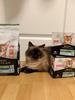 Boulette est un chat plutôt difficile qui laisse régulièrement des croquettes dans son bol, avec celles ci il ne quitte pas son bol tant qu'il n'a pas fini et en réclame encore! D'ailleurs impossible de faire une photo du bol avec des croquettes 😉