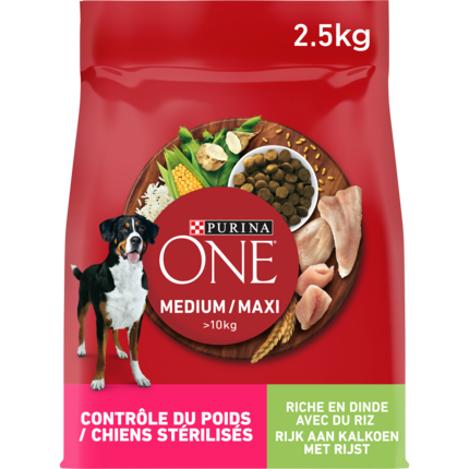 Développé par nos experts PURINA®, PURINA ONE® MEDIUM / MAXI >10kg apporte une Haute Nutrition adaptée aux besoins des moyens et grands chiens.