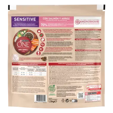 PURINA ONE® Mini/Small <10kg Sensitive - Croquettes riches en saumon et riz