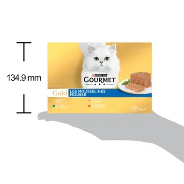 GOURMET Gold heeft Mousse ontwikkeld, een heerlijk recept om haar verfijnde smaak te verwennen met een unieke smaakbeleving. Zachte mousse met rund, kip, zalm of andere hoogstaande smaken, zorgvuldig bereid om uw kat te plezieren met een delicate en zachte sensatie. Mousse van GOURMET Gold, verleidt uw kat met een zachte, fluweelachtige verwenning!